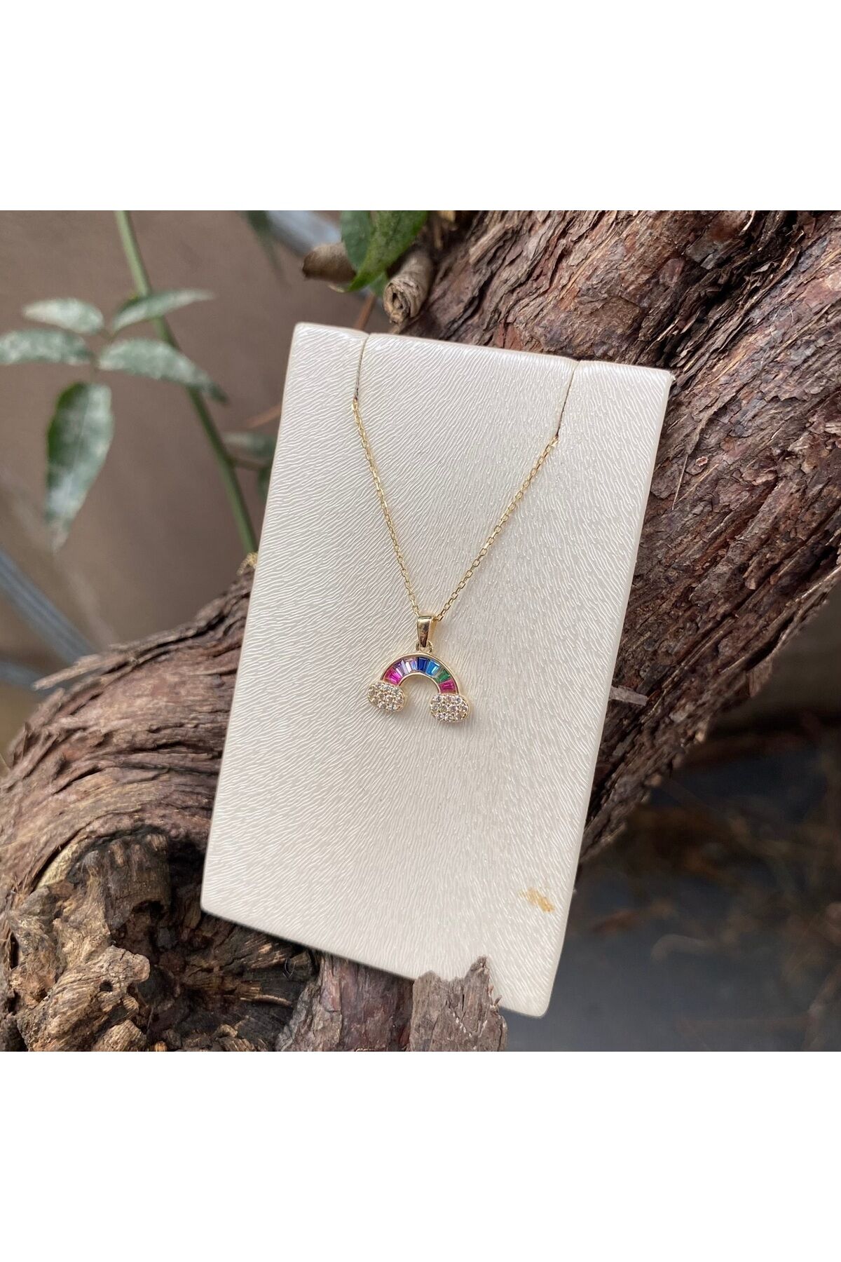 14 ayar altın gökkuşağı kolye
