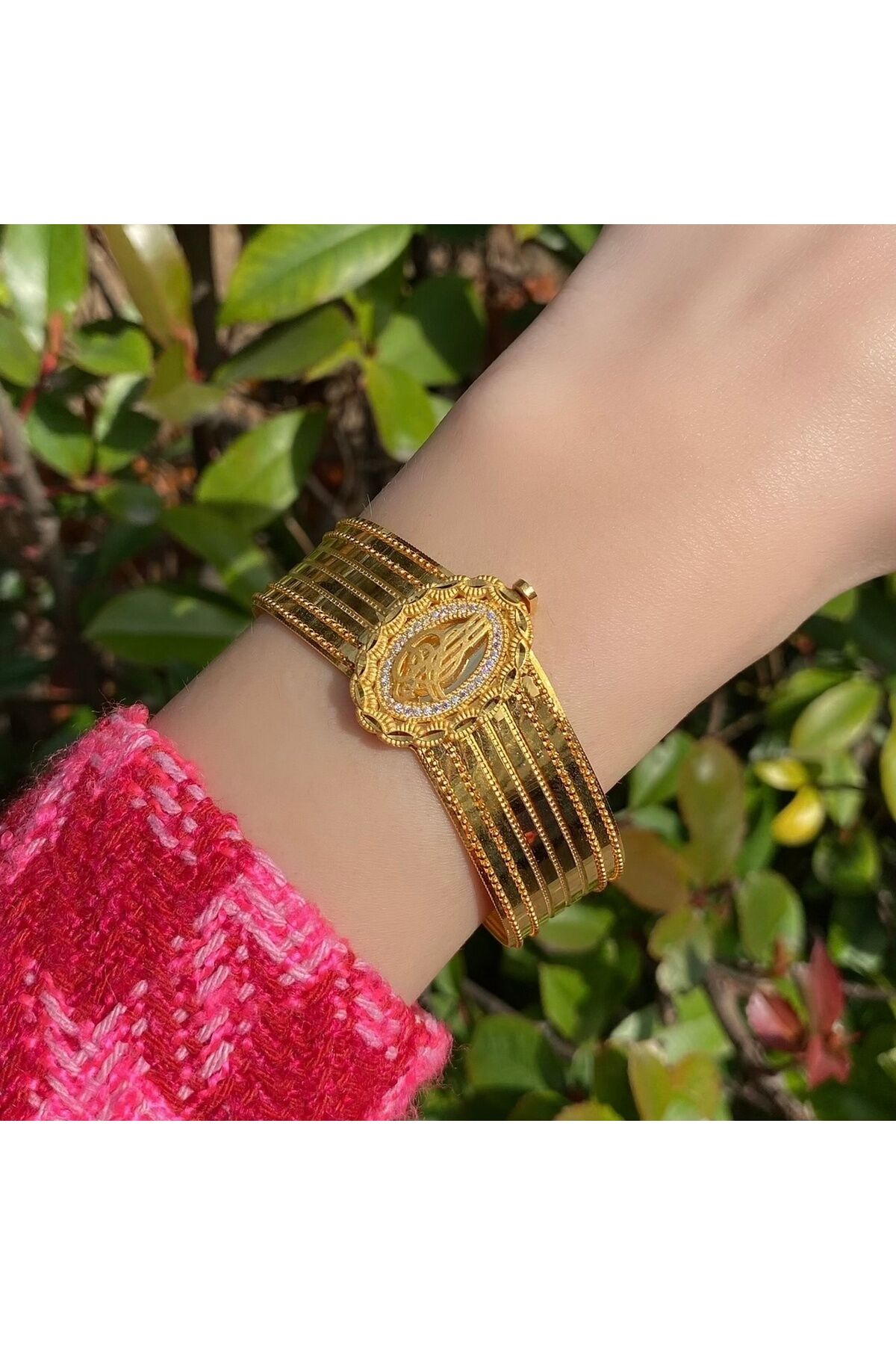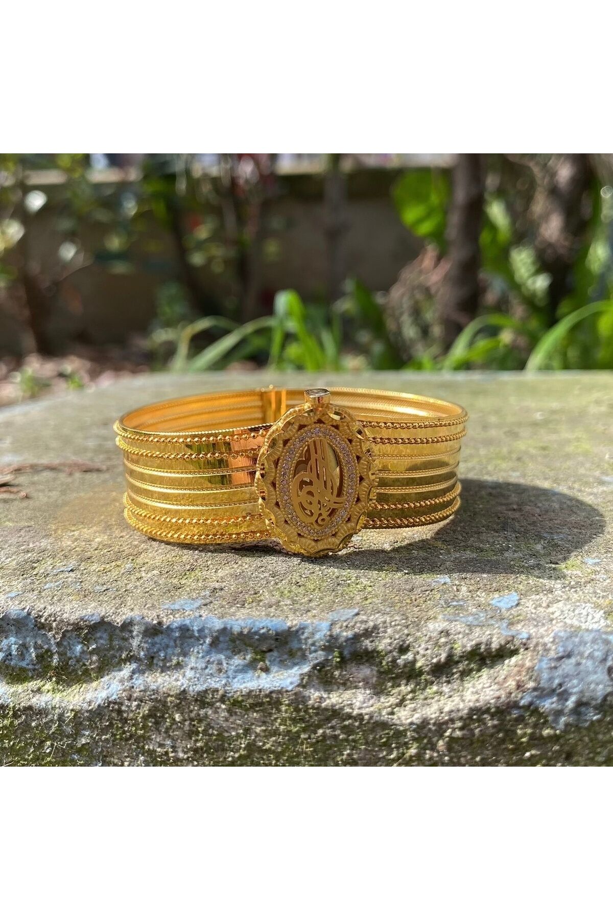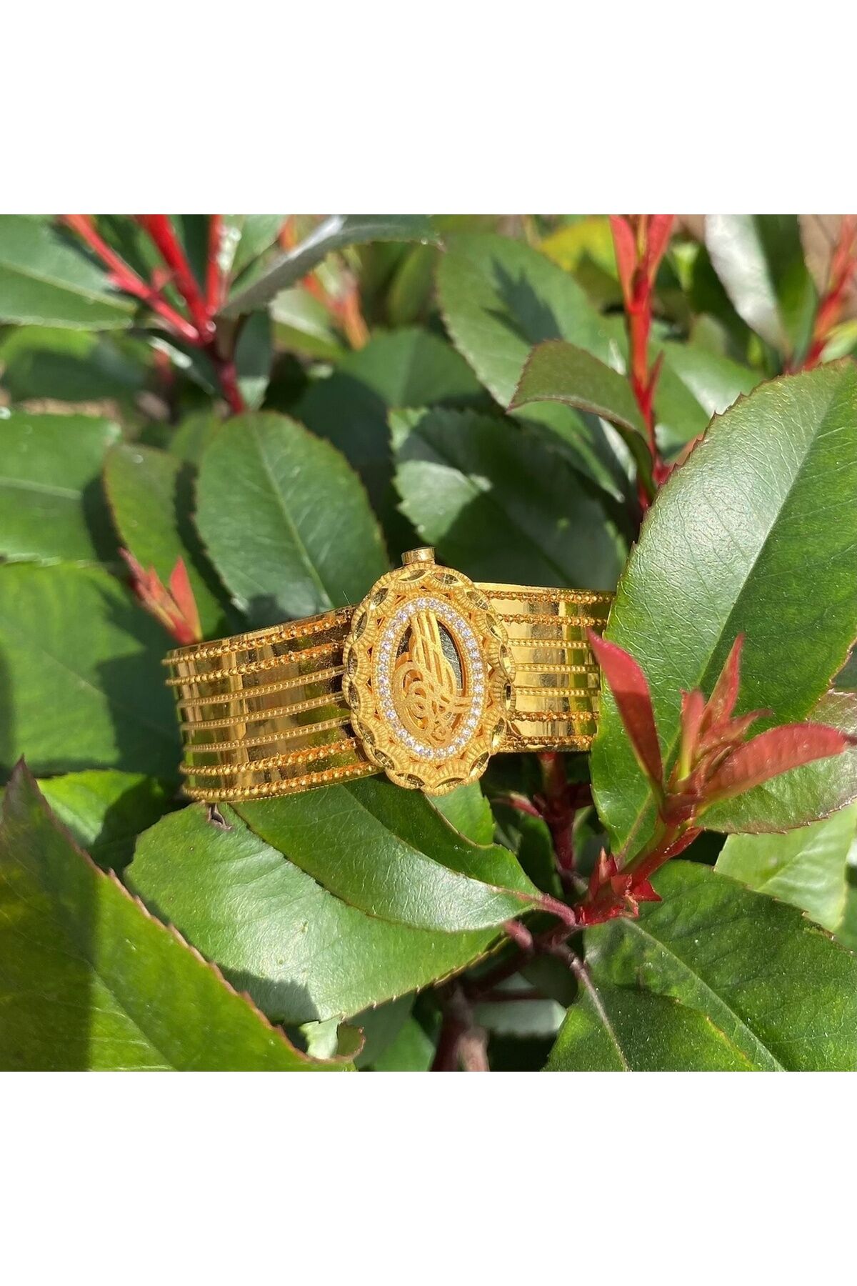 - Zarif tasarımıyla dikkat çeken altın tuğra kelepçe, şıklığınızı tamamlayacak bir aksesuar seçeneği sunar; - Yüksek kaliteli altın materyali sayesinde uzun ömürlü kullanım ve parlak bir görünüm sağlar; - Göz alıcı zirkon taş detayları ile ışıltınızı her ortamda ön plana çıkarır;