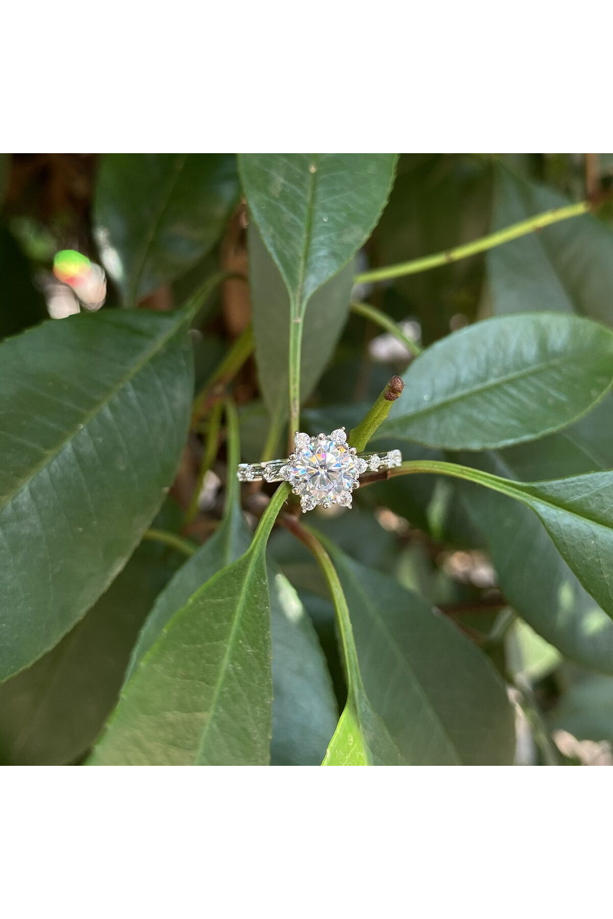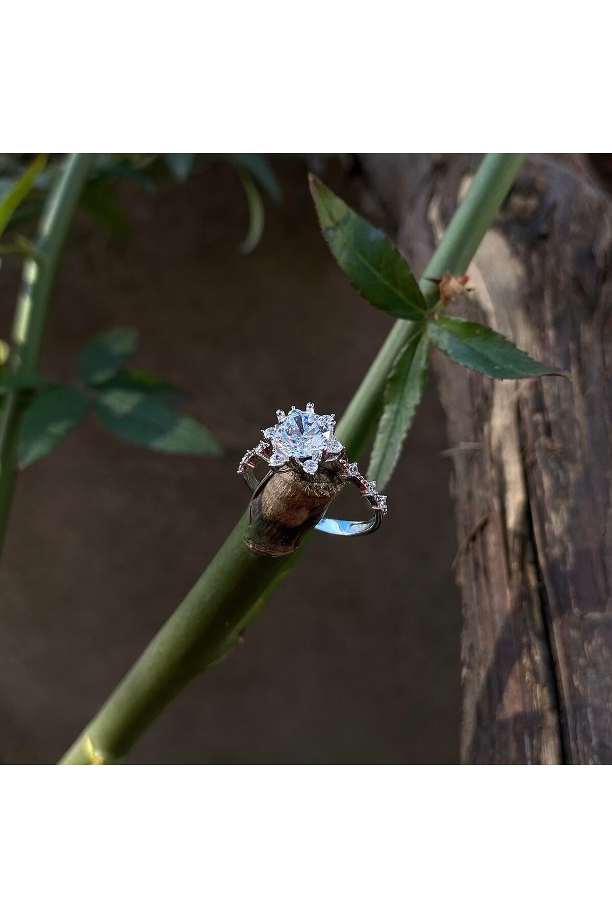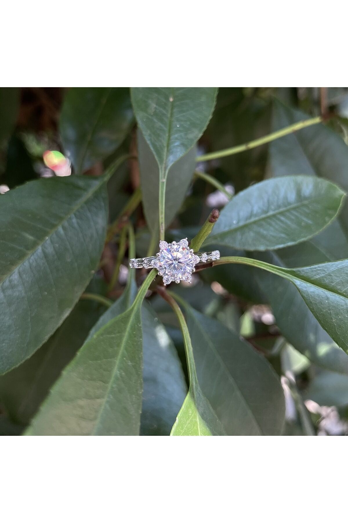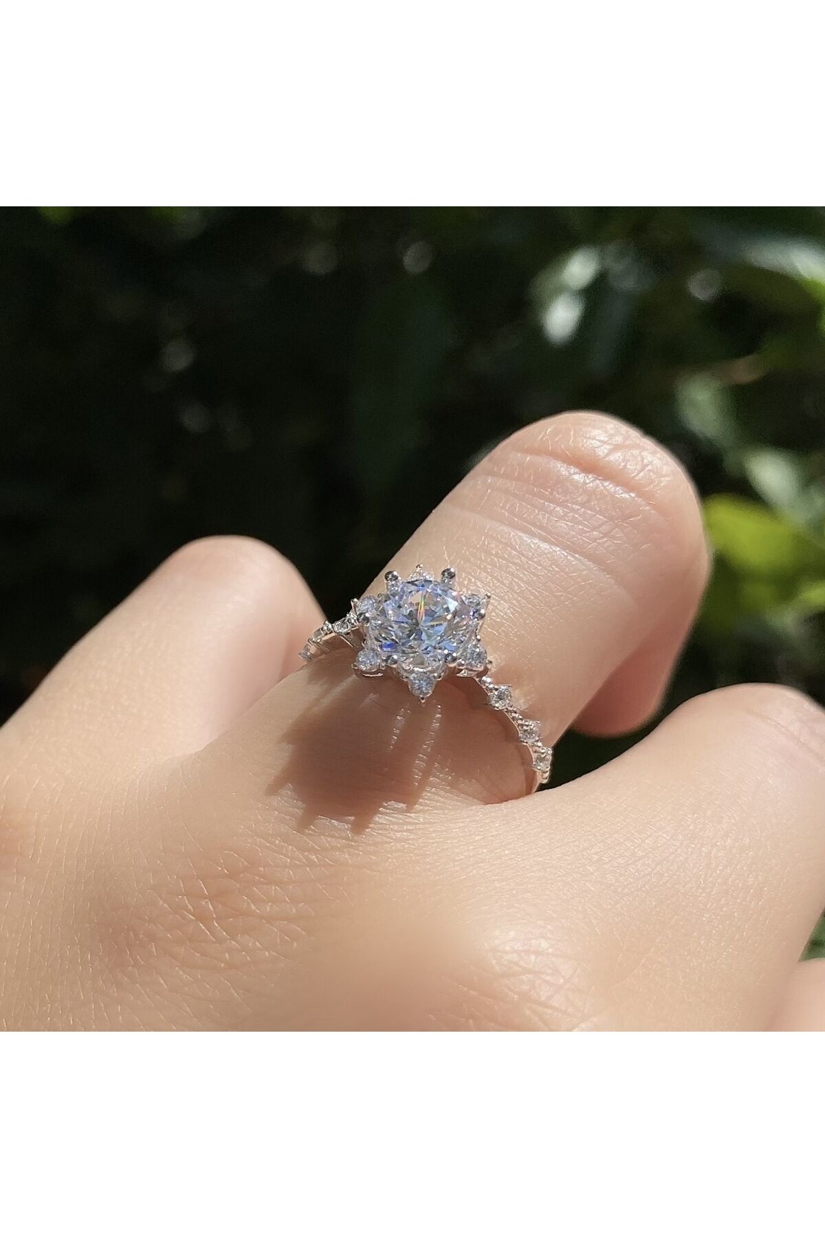 Beyaz altın lotus yüzük