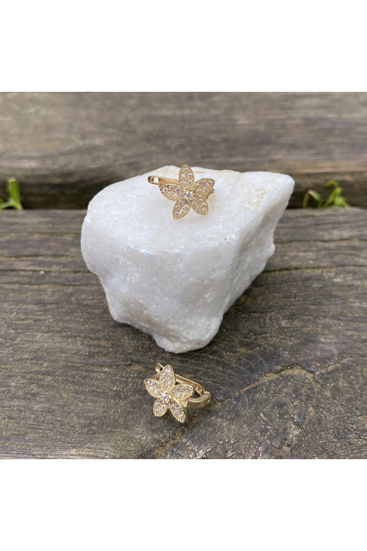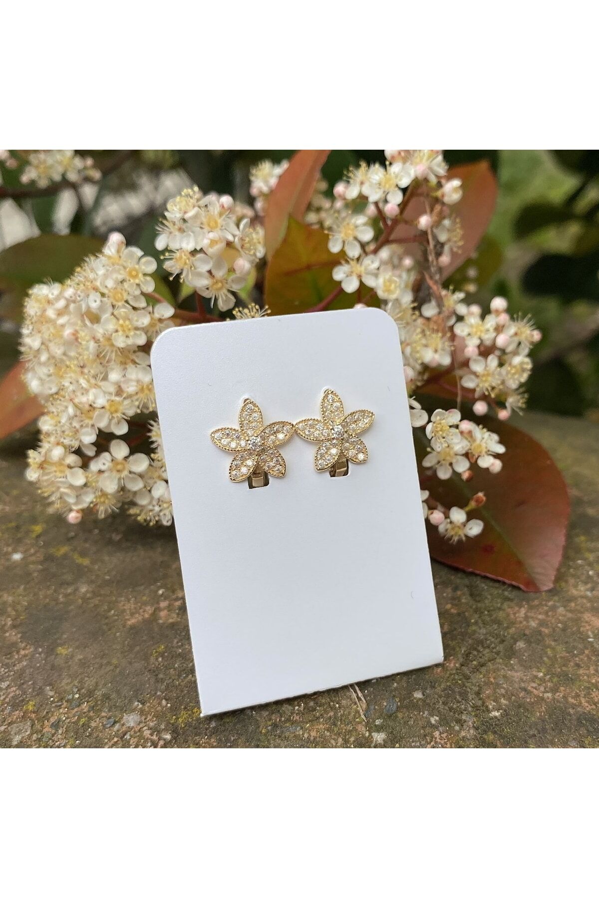 Zarif tasarımıyla dikkat çeken çiçek altın küpe, her türlü kıyafetle uyum sağlayacak şıklığı sunar; Zirkon taş detayları ile göz alıcı bir parlaklık ve estetik bir görünüm kazandırır; Altın rengi, klasik ve zamansız bir tercih olup, her yaş grubuna hitap eder; Günlük kullanım için ideal olan bu küpe, rahatlığı ve şıklığı bir arada sunar;
