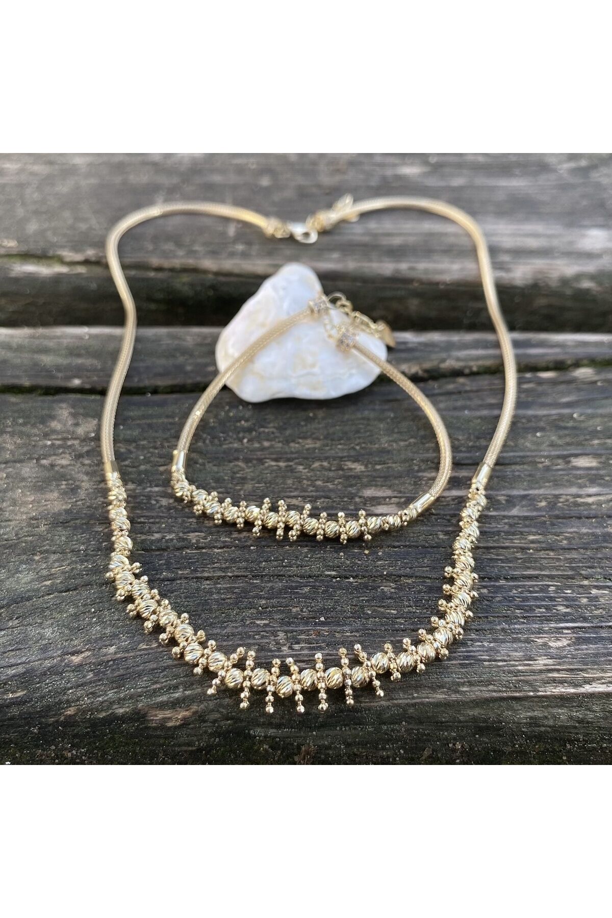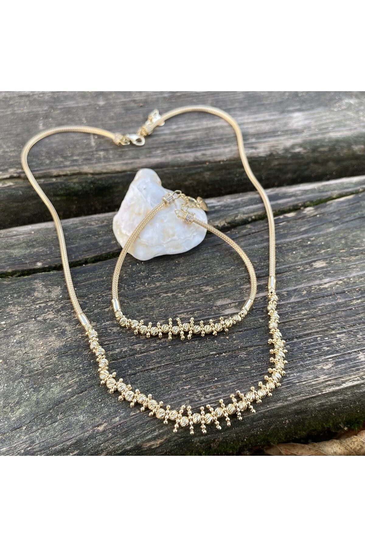 Ürün tamamen 14 ayar altındır Ürün üzerin de ayar damgası mevcuttur Ürün kutusun da gönderimi sağlanmaktadır Ürün bileklik kolye birlikte gönderimi yapılmaktadır