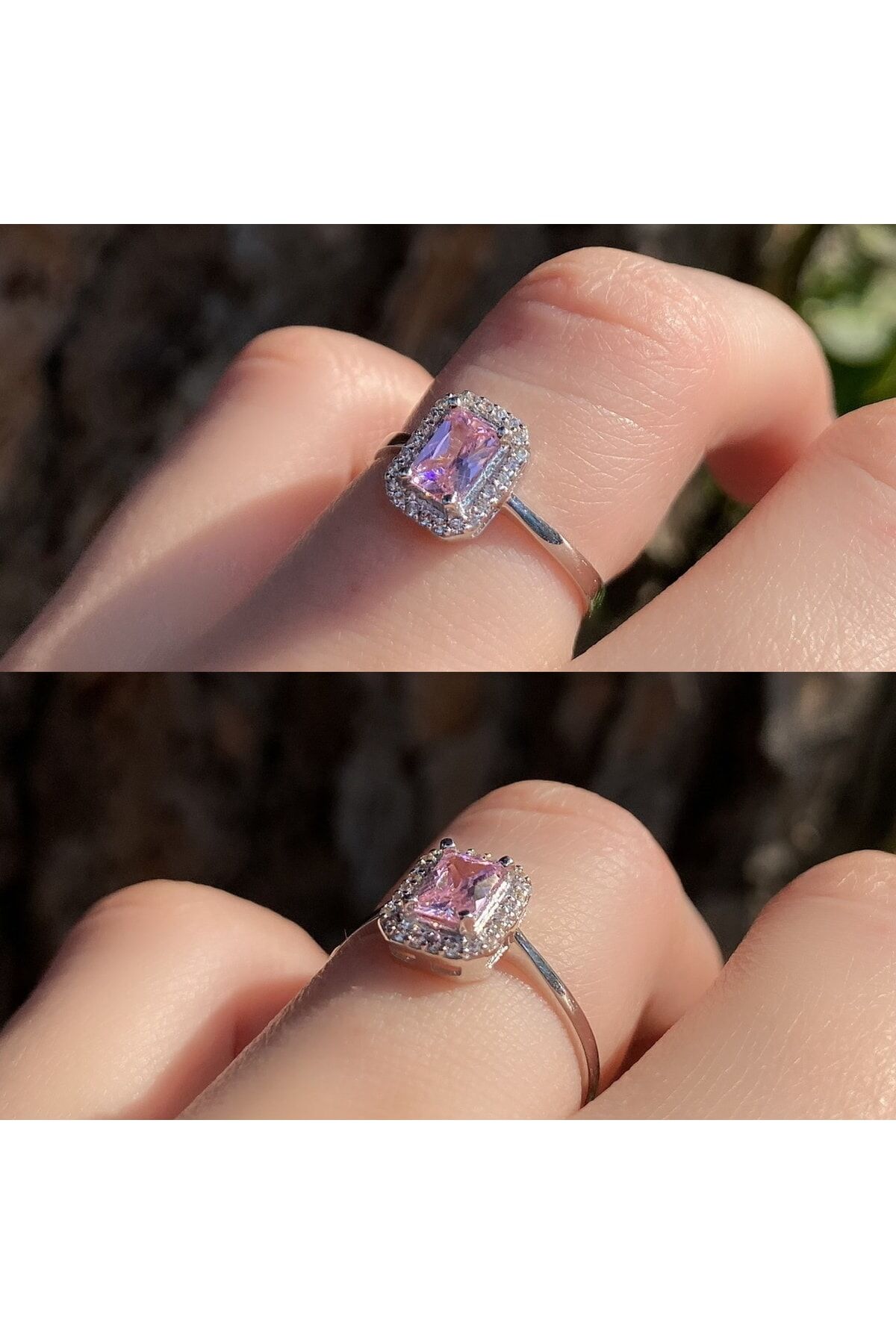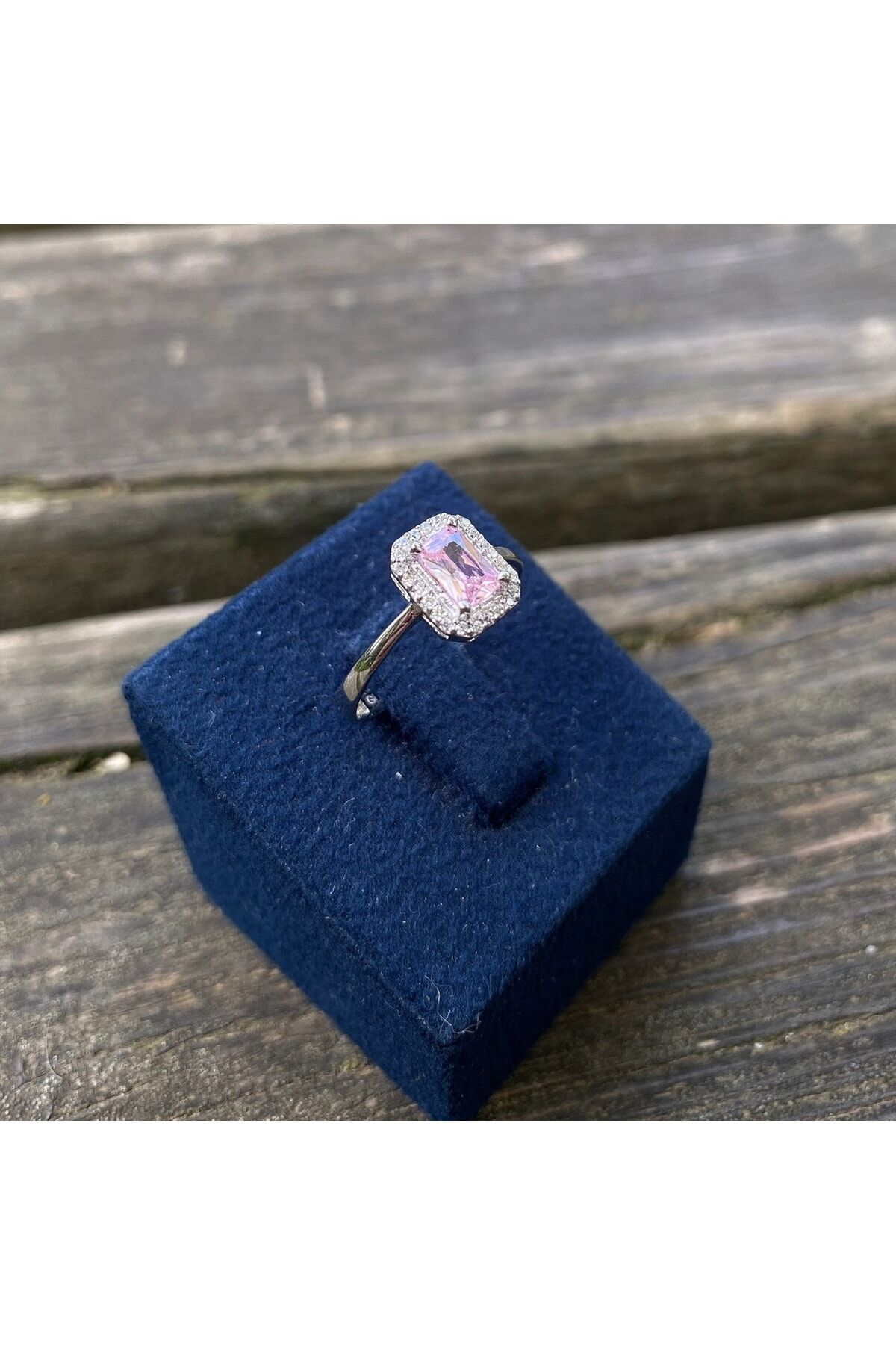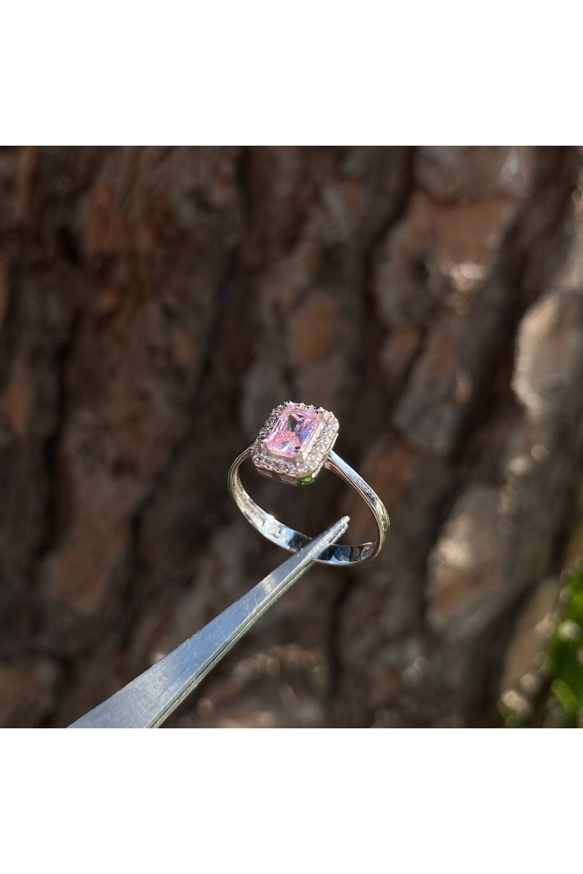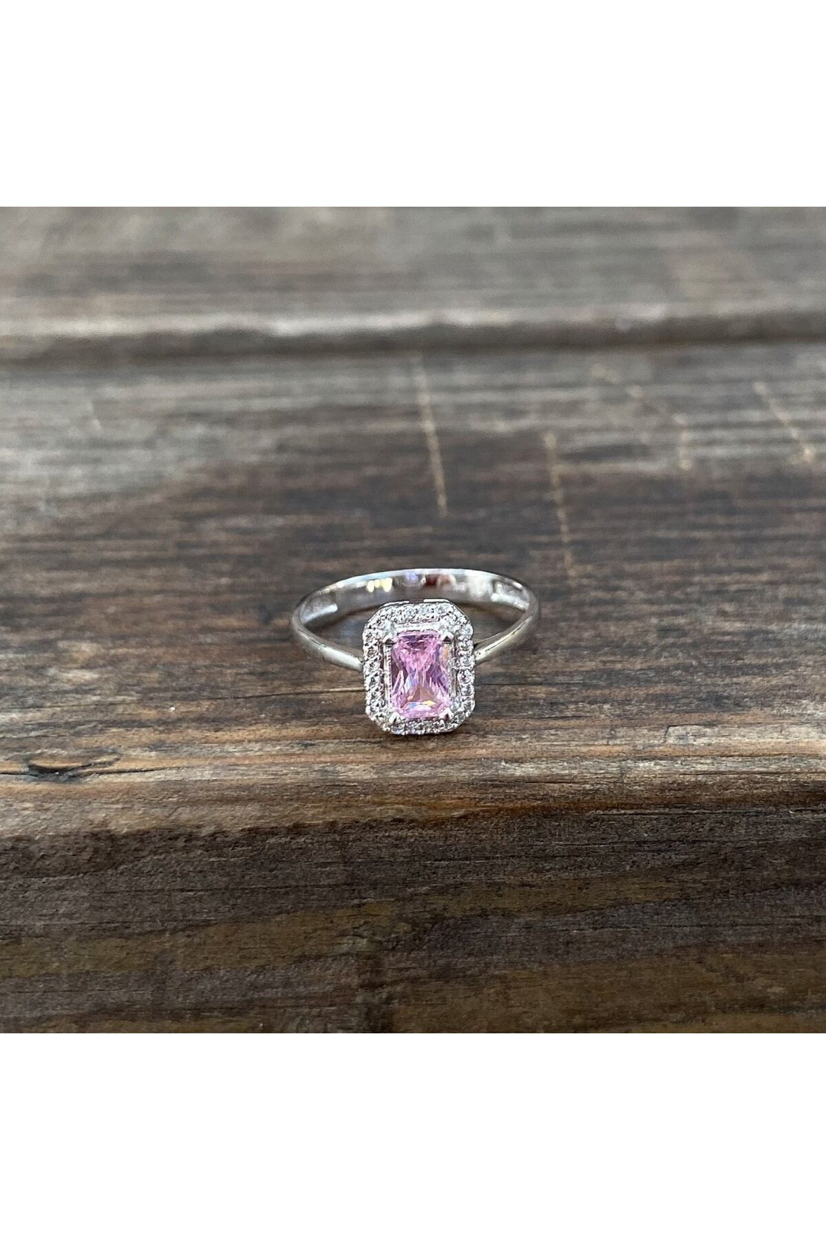 Pembe Taşlı Baget Altın Yüzük