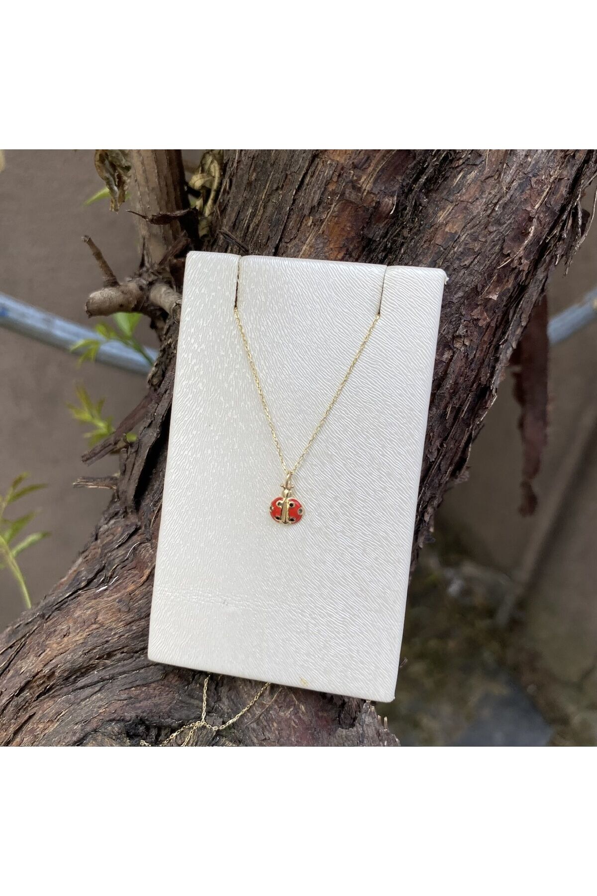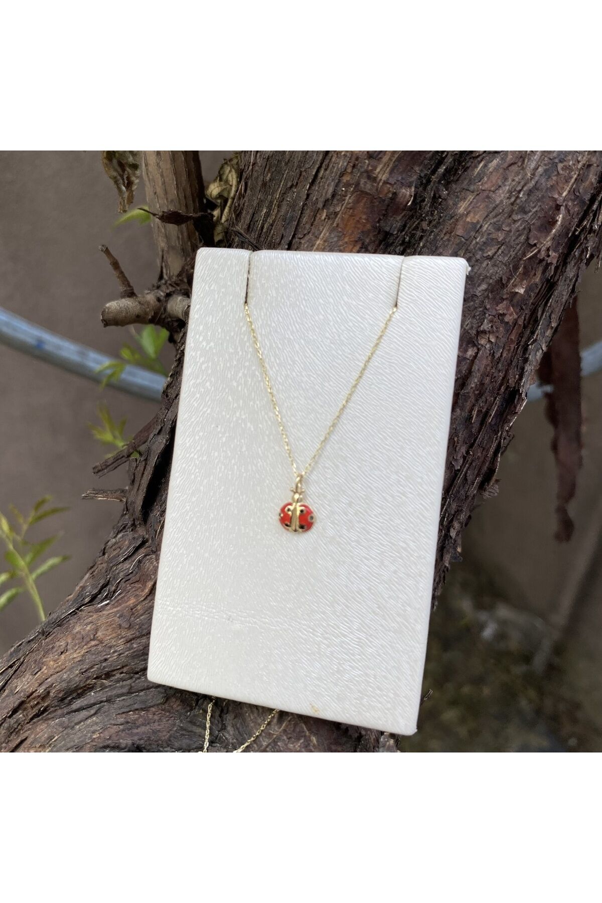 Uğur böcekli altın kolye
